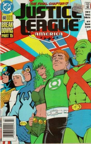 After the landmark 1986 mini-series, "Crisis on Infinite Earths", DC revamped the legend of all its characters. This series marked the re-birth of the Justice League of America. The title has undergone various name changes, including Justice League International and Justic League America. The original members were Batman, Green Lantern, Blue Beetle, Mr. Miracle. Captain Marvel and the Martian Manhunter. Warning: Don't confuse this series with "Justice League Europe", which is a totally different title. Justice League Europe was re-titled Justice League International from #51 to #68..