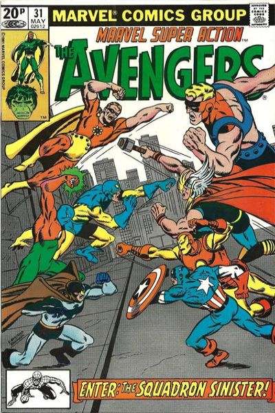 Marvel Super Action comic books containe reprints of early issues of Captain America (1968 series) and later, reprints of Avengers (1963 series).