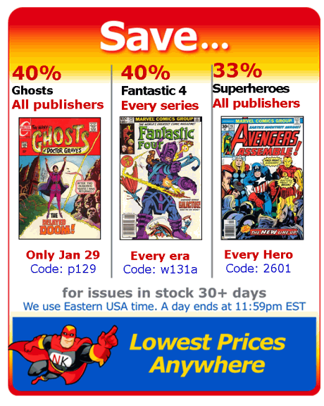 And thousands of inexpensive comics! Get a $4 comic for under 75¢ each. We sell so many, we're happy with a tiny margin.