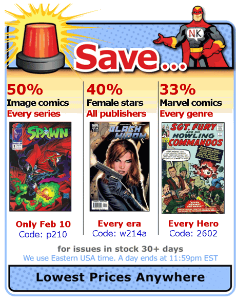 Lowest priced, discount comic books    As strange as it may sound, you help determine the price of every comic. That's because we drop the price of every comic every day it remains unsold. So, each time a book sells, some customer has determined its discounted price is worth buying it! If customers "pass" on a book, eventually some lower price will get it sold.